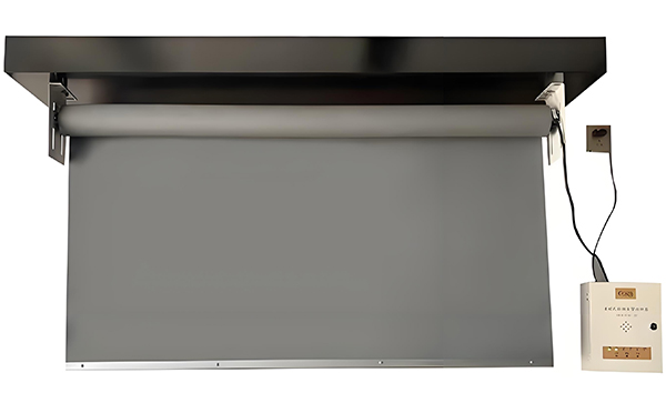 连接电源线和控制线,将永安坝街道挡烟垂壁安装在支架上,并用螺丝固定。